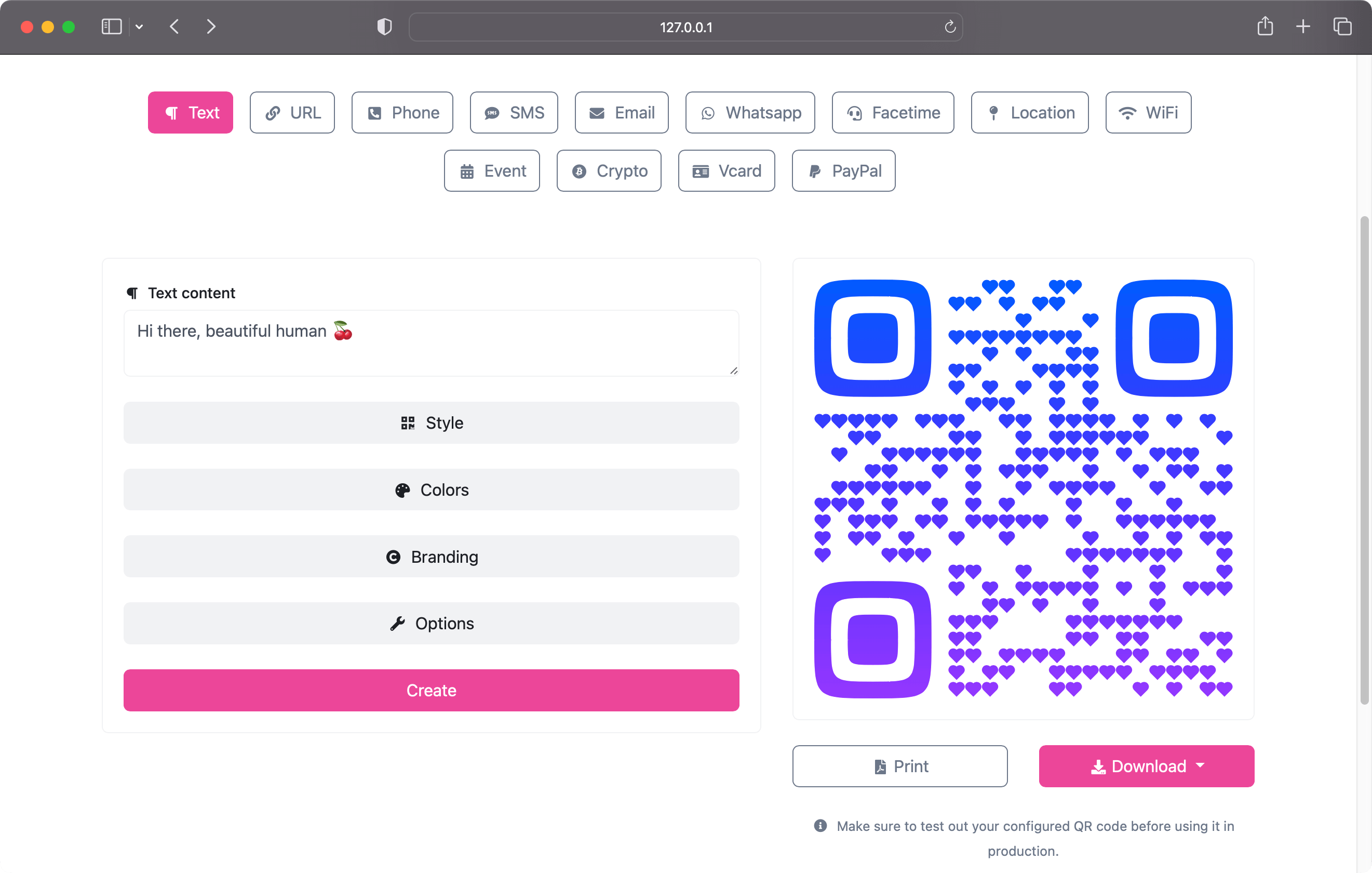 Super easy & highly customizable static or dynamic QR codes.
